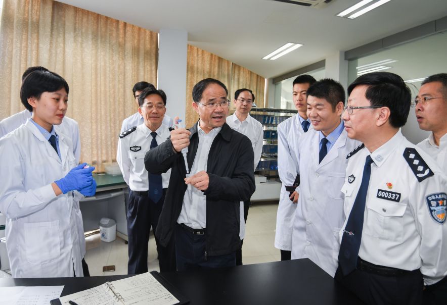 毒品防控技術研究重點實驗室由浙江警察學院和浙江諾迦生物科技有限公司共同建立,致力于毒品檢測新技術、快速甄別裝備研發(fā)、毒品預防教育體系研究等,既是技術研究部門,也是實戰(zhàn)實體單位。王昌榮來到實驗室,逐一走訪各團隊工作室,詳細了解服務禁毒現(xiàn)實斗爭情況,看望慰問科研人員。他勉勵大家以追求卓越的理念、精益求精的態(tài)度,不斷深化禁毒領域技術創(chuàng)新和理論研究,努力創(chuàng)造更多科研成果,更好地服務實戰(zhàn)。